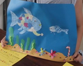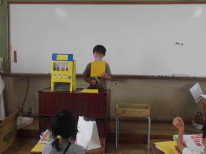 夏休みの作品の発表会をしました。おたがいの作品をみて「わあ,すごい。」「わたしも作ってみたい。」という声が聞こえました。いっしょうけんめい取り組んだ作品だということが伝わってきます。