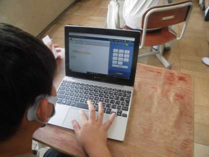 お昼ののびっこタイムで,タブレットを使ってドリルをしました。もうすぐテストがあるので単元「100をこえる数」を選んで,何度も繰り返し練習問題をしています。すぐに答えを確かめることができるので,効果的です。10分間ののびっこタイムに,ログインから後片付けまですばやくできるようになりました。子どもたちの習得の速さに驚かされます。