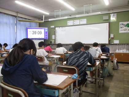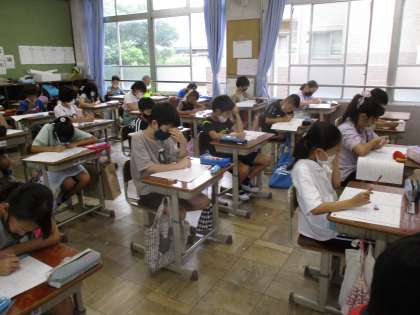 子どもたちは,普段とは違うテスト用紙を配られて緊張している様子でした。いざ,テストが始まると,真剣に問題に向き合っていました。