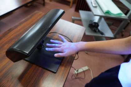 ※画像の中で,子どもの手が白く光っている部分が汚れが取れていない場所を示しています。