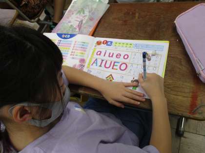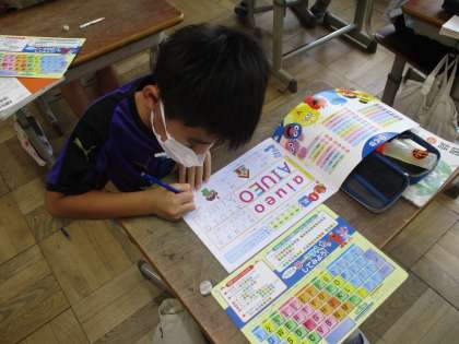 今日から新しくローマ字を習い始めました。子どもたちは,はじめは「頭が混乱してる〜!」と言っていましたが,少しずつ分かってきたようで,一画ずつ丁寧に文字をなぞることができていました。