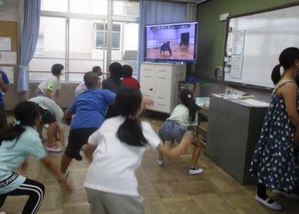 休み時間にも,教室でソーラン節の踊りの