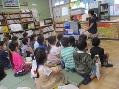 夏休みが明けて,久しぶりの図書館で読み聞かせをしていただきました。