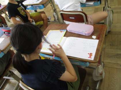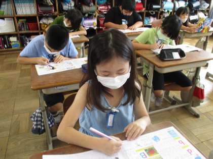 今日は濁音と半濁音のローマ字での表し方を学習しました。早く学習が終わった人が練習用ページにたくさん単語を書いて練習する姿が見られました。