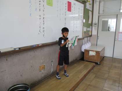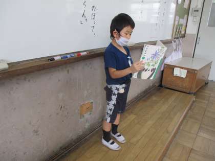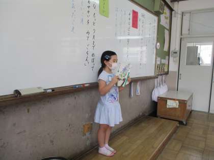 国語「やくそく」の学習では,自分の選んだ場面の音読発表会を行いました。