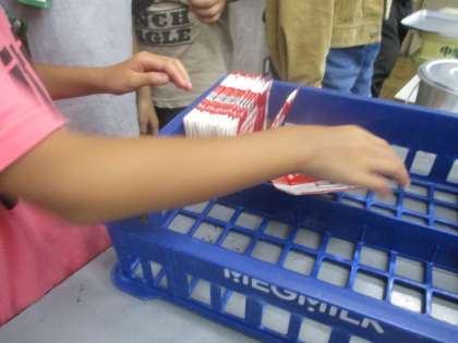 給食の後片付けの時,牛乳を飲んだ後の牛乳パックを