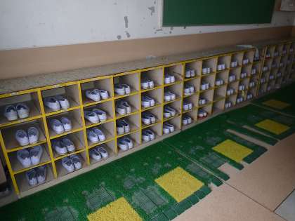 放課後,6年生の子どもたちが下校したあとに,靴箱を見に行くと,全員のくつが見事にきれいに並んでいました。
