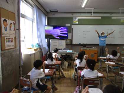 今日は,身体測定の前に,手洗い指導がありました。「てきとうてっちゃん」と「ていねいてっちゃん」の手をブルーライトに映すと・・・,しっかり洗えていないところがよくわかりました。丁寧に洗う大切さを学びました。
