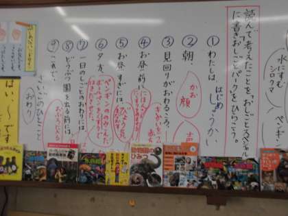 「どうぶつ園のじゅうい」を読んで,じゅういさんの仕事のすごいなあと思うところを交流しました。たくさんの意見を交流したあと,動物園や水族館に関わる仕事についての本を読みました。