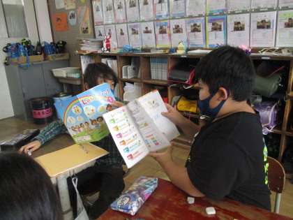 英語で自分の好きなものを伝え合いました。自分と同じものが好きな人のことを上手に質問して聞くことができていました。