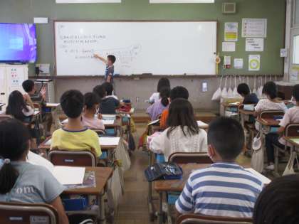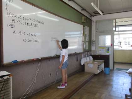今日はあまりのあるわり算の答えがあっているか,たしかめるための式を考えました。図と式を対応させながら一生懸命説明していました。『友達に伝える』という相手意識をもって説明できる人が増えてきたように感じます。
