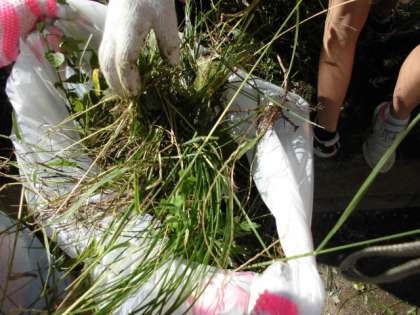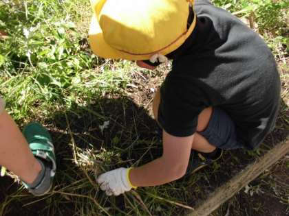 生活科「ぐんぐんそだておいしいやさい」で,使った畑の草抜きをしました。収穫だけでなく,最後の後片付けまで学習です。1時間目,快晴の下みんないっしょうけんめいがんばりました。