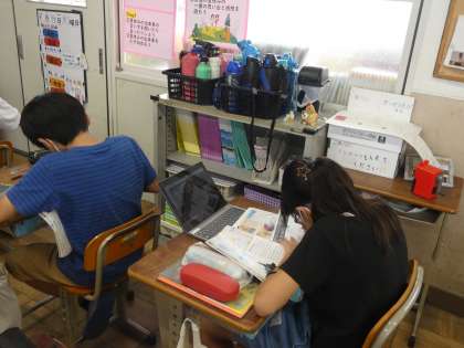 大事なところを教科書から抜き出しながら,さらに調べたい!というところはタブレットを使い調べ学習を進めていきます。