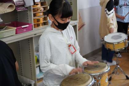 砂川小学校には,様々な種類の打楽器があるため,子ども達は協力して打楽器を選び奏でていました。