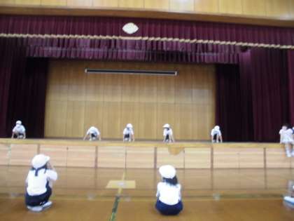 ウォーミングアップで,おにごっこをしたあと,,「ししのまい」の練習をしました。おどりのふりも,だんだん覚えて自信をもって踊ることができるようになってきました。「舞台の上で,披露したい人!」となげかけると,たくさんの子どもたちが手をあげました。お互いのよさを見つけ合って練習し,かっこよく踊れるようになってほしいです。