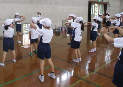 みんなもそれに合わせて,しっかり準備体操をしています。