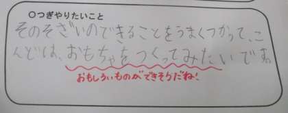 そざいあそびから気付いたことをもとに次にやりたいことを考えました。