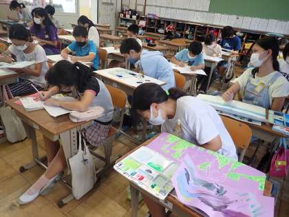 自分が描きたいものに合わせて,混色をしたり,技法を選んだりして,ためし紙に何度も練習をしてから,丁寧に仕上げていく姿が見られました。