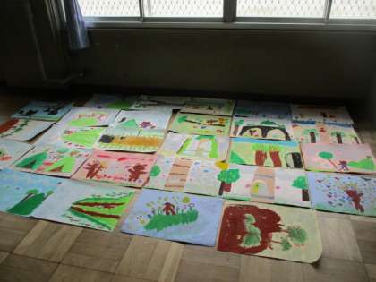 今日は,図画工作「おはなしからうまれたよ」で,まわりの色をつけました。絵の具のタンポを使って,描きました。できたら,学習室に置いていきました。担任が何も言っていないのに,こんなにきれいに並べてありました。本当にびっくりで嬉しかったです。すごいね,1年生!