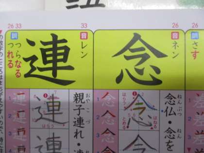 今日は,漢字ドリルで「念」と「連」を書きました。