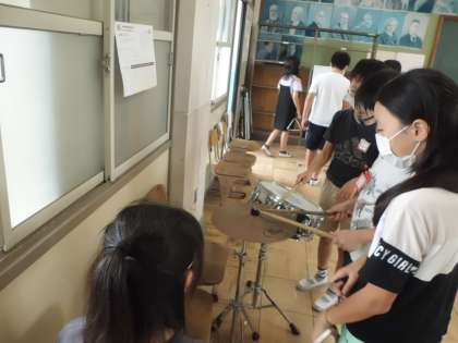打楽器でリズムを重ね,一つの音楽を作りました。班のみんなで楽器を選び,重なり合いを考え,リズムを重ねていきました。これからさらに練習し,各班で発表をします。とても楽しみです!