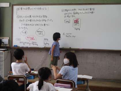 重さを計算する方法を考えました。長さと同じように,同じ単位同士を計算すればいいのかなと話し合い考えることができていました。