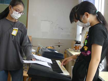 その後実際に楽器を使って確認をします。友達同士で教え合いながら,上手に演奏することができました。次回は一人ひとり発表してもらいます。どんな演奏が聞けるか楽しみです。