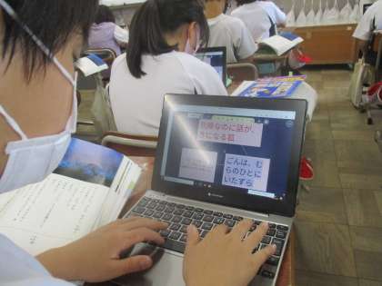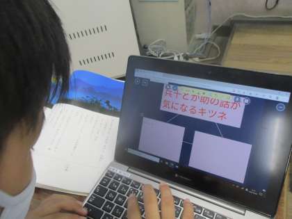 国語の物語の学習で,ごんぎつね(主人公)の気持ちの変化を読み取っています。