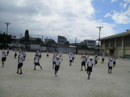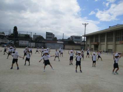 今日も暑い日でしたが,運動場の練習頑張りました。