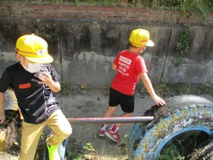 夏はセミ探しに夢中でしたが,最近はコオロギ探しに夢中なお友達が熱心に探しています。