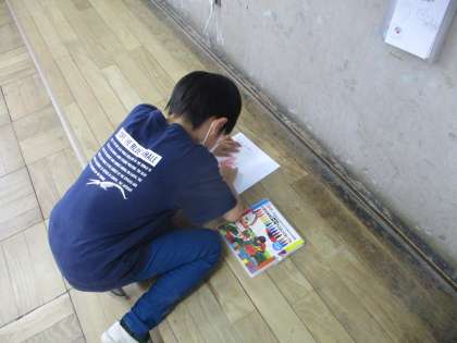 図画工作の学習では,教室の中の「でこぼこ」を見つけて,クーピーでこすりだしをしました。