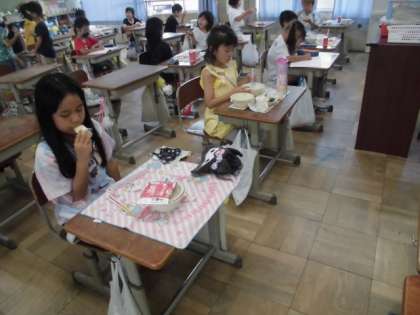 今日は,デザートにフレッシュなりんごがつきました。配られたときからいただくのが楽しみで仕方がない様子でした。おいしそうにいただいている姿が見られました。