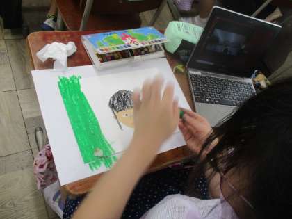 できた作品をろう下に掲示すると,子どもたちはうれしそうにみていました。