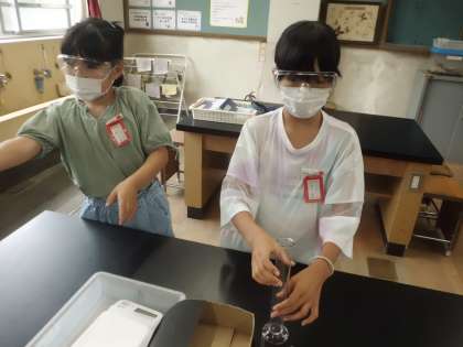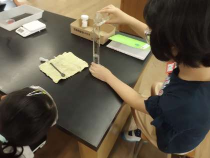 丁寧に水の量をはかりとり,ミョウバンを溶かしていました。