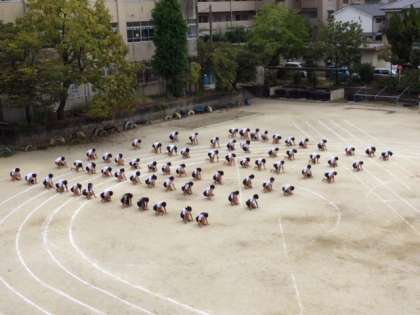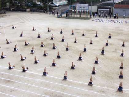 6年生の演技は,「We are not alone.〜かける〜」。心を一つに,一糸乱れぬ動きを見せた6年生は,さすがでした!見ている5年生や保護者の皆さん,教職員も,その素晴らしい演技に心を奪われました。一つ一つの動きは,簡単そうに見えて,実は非常に体幹の強さが求められるものばかりでした。それを仲間とともに息を合わせて,1つの作品に仕上げるのは,並大抵のことではなかったはずです。ダイナミックかつ繊細な素晴らしい演技に,最後は大きな拍手が送られました。