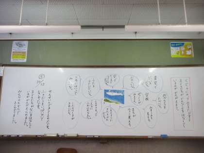 国語科「くじらぐも」で,くじらぐもに乗って空を旅する子どもたちが,どんなことをはなしているのか考えました。たくさん意見が出て,楽しい授業になりました。くじらぐもに乗ってみたいね。
