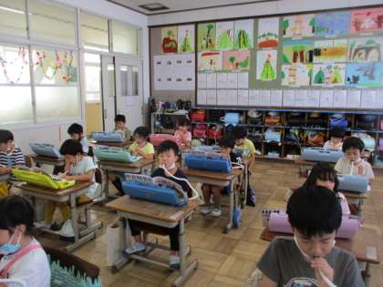 緊急事態宣言が終わり,鍵盤ハーモニカの練習をやり始めた1年生。音の出し方に気をつけて練習しています。吹くのがとても楽しそうです。