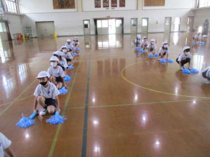 体育科授業参観でおどった「ししのまい」の発表会を行いました。