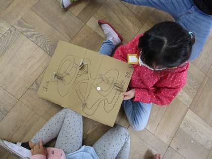 遊び方を説明したり,遊んでみた感想を伝えあったりして,楽しんでいました。