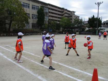 エンドボールの学習が始まりました。初めてやるルールに慣れて楽しく学習していました。次の時間は勝つための作戦をチームごとに考えながら活動していきます。