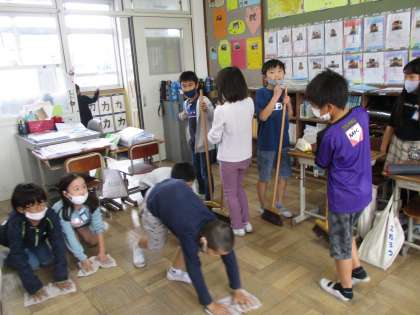 今日は掃除の時間は自分たちで ほうき→下ぞうきん→机ひき の順番にてきぱきと教室掃除をすることができていました。教室がきれいになると,とても気持ちがよくなりました。