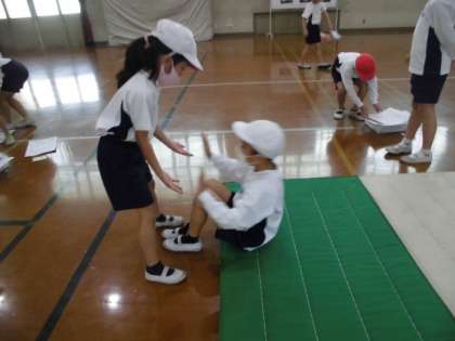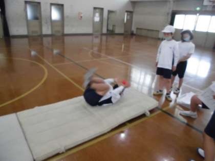 いろいろな場でマット遊びを楽しんでいます。今日は,遊び方の確認をもう一度して学しゅうにのぞみました。遊び方がだんだん分かってきたようです。もっともっとマット遊びがしたいと気持ちが高まってきました。