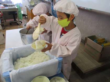 今週は,メロングループさんでした。配食にも少しずつ慣れてきました。上手になってきましたね。