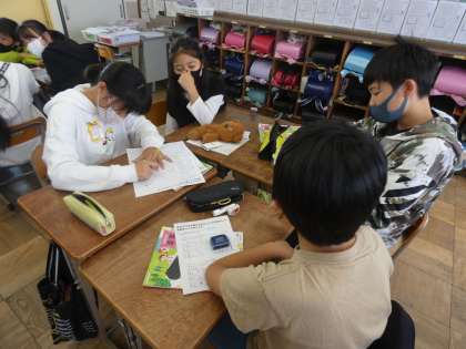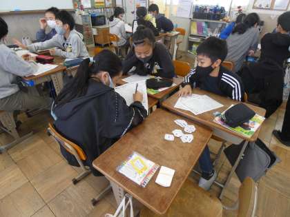 音楽の学習では,それぞれの声やリズムを合わせるボイスアンサンブルの学習をしています。