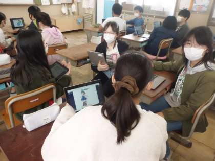 GIGA端末にあらかじめ授業で作った自己紹介を入れておき,それを使って自己紹介をしていきました。