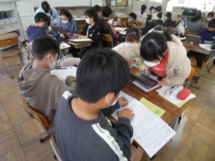 ロイロを使って写真を取り入れたり,見出しなどを工夫したりしています。どんなパンフレットが出来上がるか楽しみです。