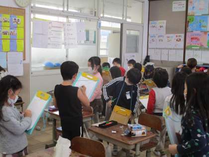 1年生 ずこう「かざってなにいれよう」