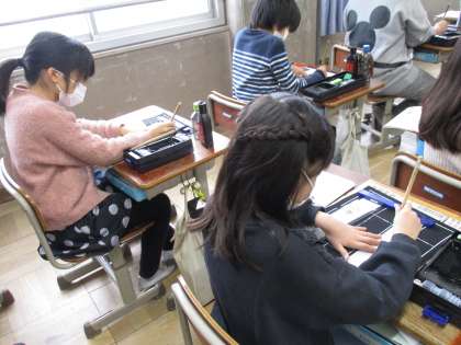 今日は初めて小筆の使い方を学習しました。丁寧に自分の名前を書いていましたが,初めてだったので苦戦している様子でした。