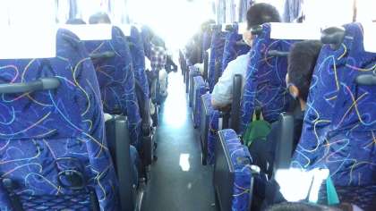 こちら,1組のバスの様子です。DVD鑑賞を楽しみながら,静かに過ごしている子どもたちです。時々,「わぁ〜!」「きれい!」という声が聞こえてきます。窓から見える綺麗な紅葉に,目を奪われる子どもたちでした。バスからの景色も,この時間のお楽しみの一つとなっているようです。