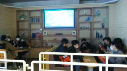 阪神淡路大震災の揺れを体験できるコーナーでの様子です。